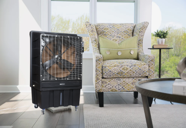 This portable evaporative cooler is perfect for Delhi’s dry summers and makes a stylish addition to modern interiors.