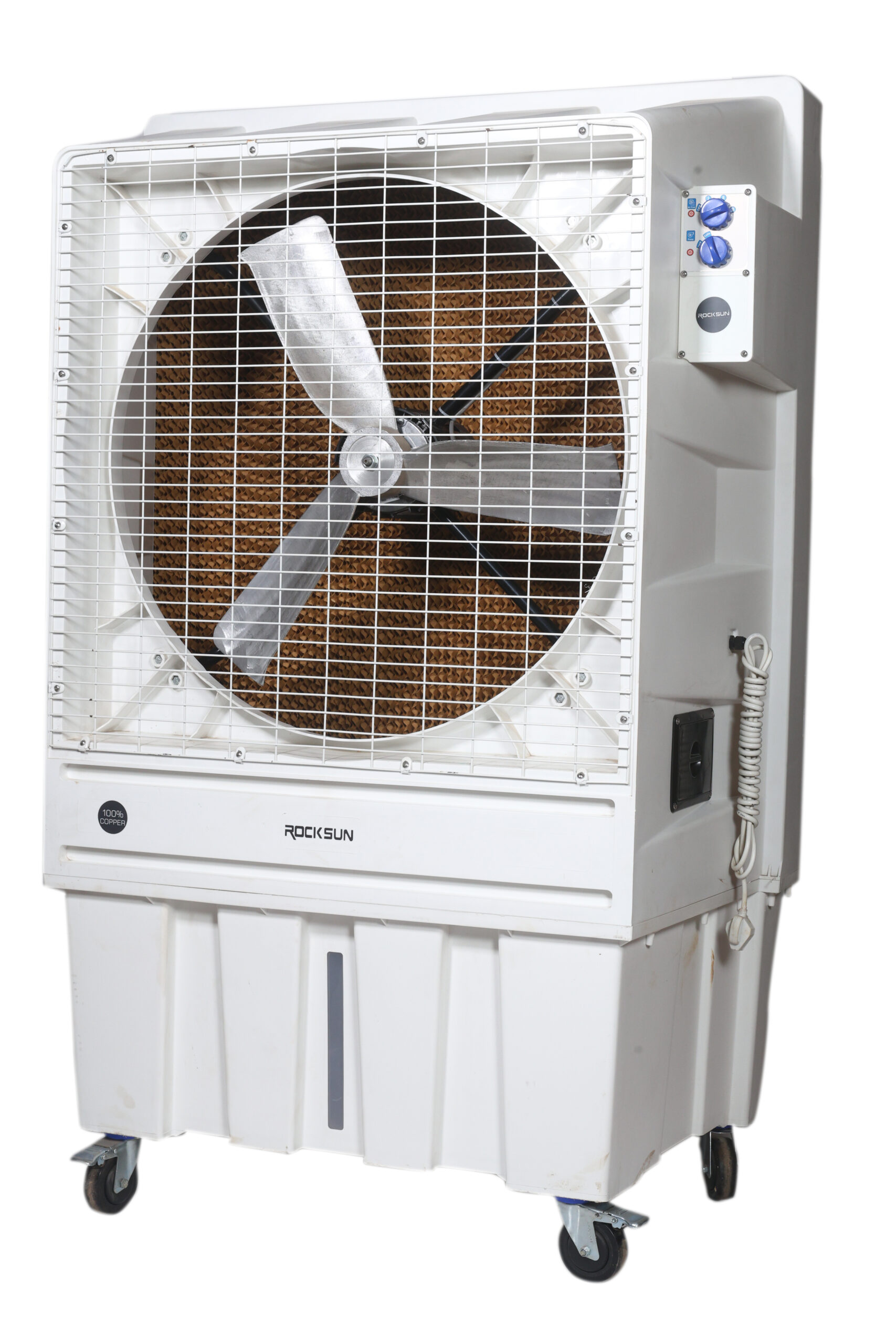 Conquer the toughest Indian summers with the Everest, Rocksun’s ultra‑large evaporative solution engineered in Delhi. Delivering a massive 5,000 m³/h of cool air through 100 mm honeycomb cooling pads and powered by a robust 500 W energy‑efficient motor, Everest is built for large halls, banquet venues, warehouses, and open‑plan offices. Its 180 L water tank ensures up to 14 hours of uninterrupted cooling—perfect for extended events and industrial shifts.